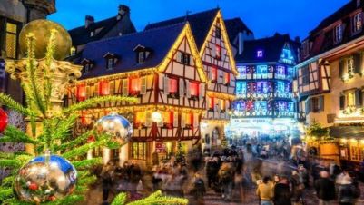 Еднодневна екскурзия "Колмар и пътят на виното". Отпътуване за Колмар - "малката Венеция на Франция". Разходка из тесните улички, осветени от празнични светлини, и цветните къщи с традиционна елзаска архитектура-Къщата с главите, къщата Пфистер, църквата Сен Мартен, каналите на р.Лаух са само част от пешеходната ни разходка в бижуто на Елзас- приказния Колмар.