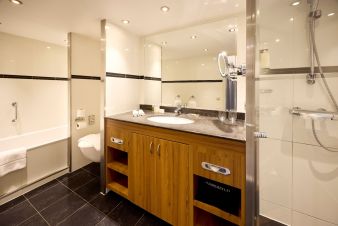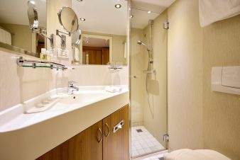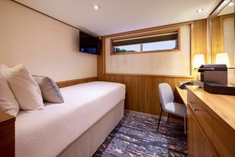 66 двойни каюти, 14 единични каюти, 13 двойни суити и 1 мастър суит, разположени на 3 палуби. Каютите на средна и висока палуба са с френски панорамни прозорци. Каютите разполагат с 2 единични или 1 двойно легло, баня и тоалетна, телевизор, климатик. Единичните каюти са с площ от 11 м2, двойните 16 м2, суитите – 24 м2, мастър суита – 32 м2.