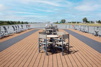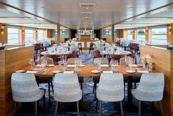 Корабът разполага с ресторант, бар с жива музика вечер, тераса със стъклен покрив в задната част на кораба, слънчева тераса на най-горната палуба с шезлонги. На борда има асансьор, който свързва 3-те палуби /без слънчевата/. Всички помещения на борда са климатизирани.