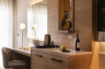 Всички стаи са оборудвани с климатик, телевизор, телефон, баня с душ, сешоар, чехли, сет за чай/кафе,  еспресо машина, минибар (безплатен), сейф (безплатен), 4 таблета (ежедневно - безплатно), ютия и дъска за гладене (за целия престой - при поискване).