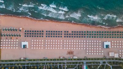 Собствен пясъчен плаж, 2 бара на плажа (единия е винен бар, работи от 03.05 до 31.10) безплатно. На басейна и на плажа: чадъри, шезлонги, матраци – безплатно. Плажни кърпи – безплатно.
