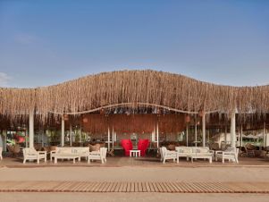Собствен, пясъчен. Чадъри и шезлонги на плажа и при басейна - безплатно. Плажни кърпи - безплатно. Кабани - срещу заплащане.