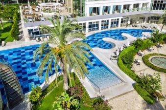 Хотелът се намира на брега на морето, в района на Лара, на 12 км. от центъра и 10 км. от летището на Анталия. Построен е през 2005г. и е последно реновиран 2019-2020г. с обща площ от 33 000 кв.м.