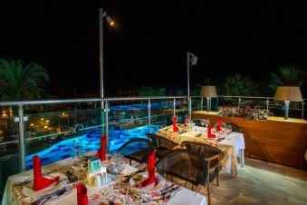 Ultra All Inclusive – закуска, обяд и вечеря на шведска маса, междинни хранения, алкохолни и безалкохолни напитки – без лимит (съгласно концепцията на хотела).