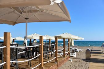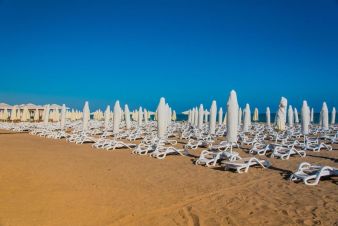 Собствен, на 450 метра от хотела. Чадъри, шезлонги и матраци на плажа и при басейна – безплатно, плажни кърпи – срещу депозит.