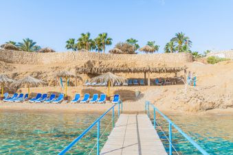 Собствен, пясъчен и коралов, с дължина 700 метра, кей. Чадъри, шезлонги и плажни кърпи на плажа и при басейна – безплатно.
