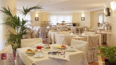 Хотел Vecchio Borgo е очарователен хотел, с топла и гостоприемна атмосфера, в самото сърце на Палермо. Лобито е елегантно, уютно и спокойно. Рецепцията работи 24 часа в денонощието. Има безжичен интернет. Закуската предлага разнообразие от домашно приготвени храни, които се сервират в специална стая с гледка към пазара. Хотелът е уютен и изтънчен – истински 4*.