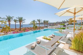 Собствен, коралов, кей. Чадъри, шезлонги и матраци на плажа и при басейна - безплатно.