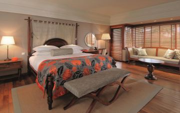 3 алакарт ресторанта - основен ресторант L’Archipel, рибен ресторант Le Barachois, азиатски ресторант, 3 бара - The Laguna Bar, The Lotus Lounge Bar, Barachois – floating bar, винарна с 25,000 бутилки вино (най-голямата на Мавриций), СПА център със сауна, парна баня, студен и топъл басейн, магазини, 24-часова рецепция, библиотека. Безплатни услуги: фитнес, тенис, колелета под наем. Платени услуги: масажи и процедури в СПА центъра, химическо чистене и пране, фризьор, уроци по тенис и йога, личен фитнес треньор, оборудване за тенис. За децата: детски клуб, детски басейн, детска площадка. Плаж: собствен, с фин бял пясък.