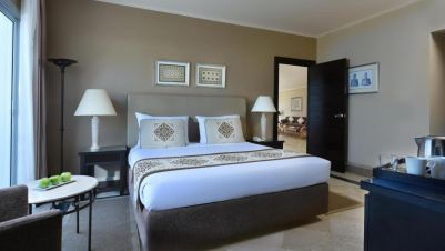 Джуниър суит - С максимално настаняване от 2 възрастни и 1 дете и с размер от 75 квадратни метра. Тези стаи са с гледка към морето и с голяма спалня.