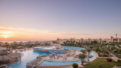 Serenity Alpha Beach е елегантен петзвезден хотел, част от Serenity Hotels & Resorts. Разположен в голям зелен комплекс с красива градина, множество басейни и панорамна гледка към морето, той предлага спокойствие, лукс и арабски стил на архитектурата. Идеален за семейства, двойки и почитатели на шнорхелинг, които търсят пълноценна почивка сред природата и морето.