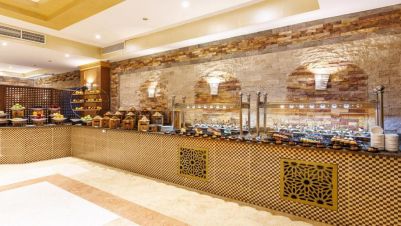 - Основен ресторант – международен бюфет с разнообразие от ястия, включително тематични вечери, show cooking станции и зони за деца