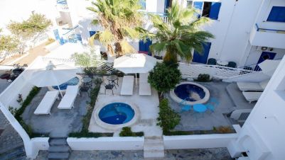 Всички стаи са декорирани в модерен цикладски архитектурен стил и разполагат с всички удобства, от които се нуждаете. Стаите са снабдени с климатик, телевизор с плосък екран със сателитни канали, хладилник, сейф, сешоар, собствена баня с душ, тоалетни принадлежности, балкон или тераса.