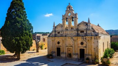Тук ще имате възможност да пиете кафе и да разгледате манастира Агия Трияда- Венециански манастир с над 300 годишна история. По пътя си ще преминем покрай планината Иди с най-високия връх на острова Псилоритис и турът ще ни отведе в красивия град Хания, където ще имате възможност да се полюбувате на старото пристанище и да се изгубите сред живописните тесни улички на стария венециански град. Хания е бивша столица на остров Крит, очарователна със своите Венециански крепостни стени и пристанище, тесни еднопосочни улички и стари сгради от Венецианския и Турския период ще ви пренесе в миналото. Старото пристанище, където са навързани множество малки рибарски лодки е перфектното място да се насладите на гледката и оживлението, докато пиете кафе. На границата между Стария и Новия град е закритият пазар и пазара за кожени изделия.