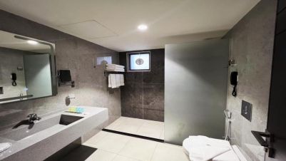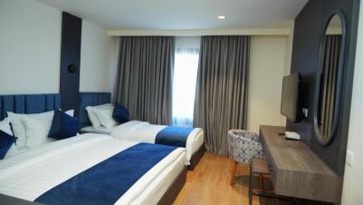 - Във всички стаи: климатик, сейф, телевизор, телефон, мини‑хладилник, WiFi, самостоятелна баня с душ/вана, сешоар, принадлежности за чай/кафе.