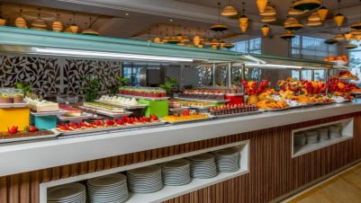 - Предлага закуска, обяд и вечеря с разнообразие от международна и местна кухня. Тематични вечери се организират редовно.
