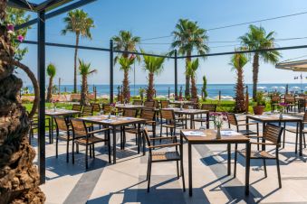Собствен пясъчно-чакълест плаж. Чадъри, шезлонти, матраци и плажни хавлии на плажа и при басейна- безплатно. Бар на плажа -платено.