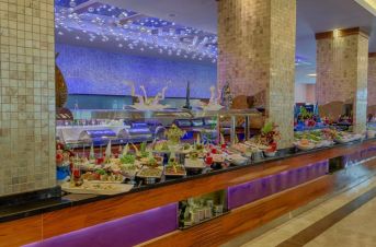 Основен ресторант, а-ла-карт ресторант (с предварителна резервация), 3 бара, открит и закрит басейн, водни пързалки, магазини, СПА център, паркинг. За децата: открит и закрит детски басейн, водни пързалки, детска площадка, мини клуб (4–12 г.) Безплатни услуги: Сауна, турска баня, фитнес, аеробика, тенис на маса, анимационна програма, интернет (на лоби). Платени услуги: СПА център, масаж, пилинг, билярд, сейф (2 евро на ден) магазини, химическо чистене, моторни водни спортове. ПЛАЖ: Собствен, пясъчен – чадъри и шезлонги на плажа и при басейна – безплатно, плажни кърпи - безплатно.