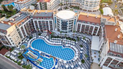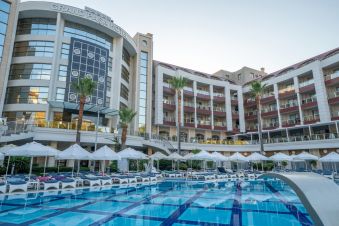 Основен ресторант, 3 бара, открит басейн, закрит басейн, детски басейн, водна пързалка, СПА център, детски клуб, аеробика, билярд, дискотека, анимация, магазини, конферентни зали. Безплатни услуги: сауна ,турска баня, фитнес, WI-FI интернет в лоби, тенис на маса. Платени услуги: билярд, интернет кафе, пералня, лекар, детегледачка ,Спа и Уелнес център Плаж: Градски плаж - Чадъри и шезлонги при басейна – безплатни, а на плажа – платени.