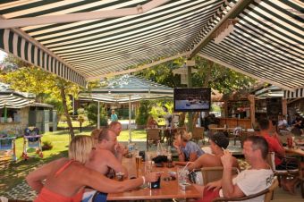 Собствен плаж, пясък/чакъл – чадъри и шезлонги на плажа и при басейна – безплатно, плажни кърпи – срещу депозит.