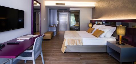 Хотелът разполага общо с 242 стаи, всички оборудвани, климатик, телевизор, телефон, баня с душ, сешоар, мини бар, сейф (платен), балкон. Почистване на стаите – всеки ден, смяна на спалното бельо и кърпите – 3 пъти в седмицата.