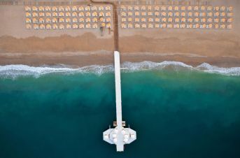 Собствен, пясъчно-чакълест с дължина 340 м. Чадъри, шезлонги и матраци на плажа и при басейна - безплатно. Плажни кърпи – срещу депозит.