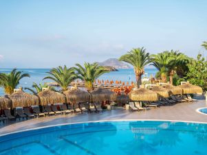 Основен ресторант, 2 а-ла-карт ресторанта (рибен и италиански - 1 безплатно посещение на 1 от ресторантите при минимум 7 нощувки, от 01.05.2026 - 30.09.2026), сладкарница, 3 бара, 3 открити басейна, 2 водни пързлки, СПА център, дискотека, магазини, паркинг.