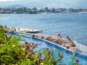 Намира се на 50 км от летище Бодрум, на 20 км от центъра на Бодрум, на 3 км от центъра на Тургутрейс, на брега на морето. Построен 1989 г., на обща площ от 36 000 м². Реновиран 2017 г.