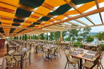 Основен ресторант PINA с диетичен, вегетариански и детски кът; 5 а-ла-карт ресторанта (турски MARDIN, италиански PULCINELLA, тепаняки SAKURA - с предварителна резервация, 4 снек ресторанта; 12 бара, сладкарница, 2 открити басейна, 1 закрит басейн, аква парк с 10 водни пързалки, амфитеатър, СПА център, дискотека, магазини, 9 конферентни зали, паркинг. На плажа има общо 16 кабани, които могат да се наемат срещу допълнително заплащане, с включен сервиз.