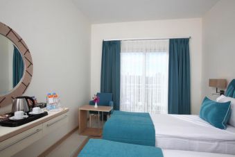 Хотелът разполага с общо 181 стаи, разположени в 3-етажни сгради. Standard room (18 m²), Family room (22 m²).
