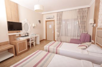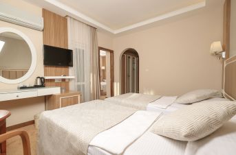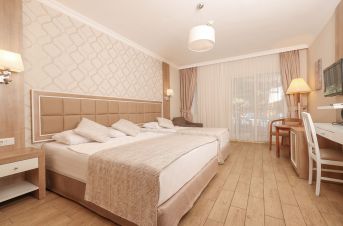 Всички стаи са оборудвани с климатик, телевизор, телефон, баня с душ/вана, сешоар, минибар (безплатно зареждане с вода и безалкохолни напитки ), сет за чай/кафе, сейф (безплатен), балкон или веранда. Почистване на стаите - всеки ден, смяна на  спалното бельо и кърпите - 3 пъти в седмицата.