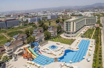 Основен ресторант, 3 Ала Карт ресторанта (турски, рибен, барбекю - с предварителбно записване, за 1 седмичен престой се полага 1 посещение - безплатно), 6 бара, 2 открити и 2 закрити басейна, 1 конферентна зала, SPA център, магазини, фризьорски салон. За децата: детски басейн, мини клуб, анимация, детска площадка. Безплатни услуги: сауна, турска баня, плажен волейбол, тенис на корт, тенис на маса, баскетбол, боулинг, безжичен интернет (на lobby). Платени услуги: масаж, игрални автомати, лекар, водни спортове. Плаж: Собствен - пясъчен. Чадъри, шезлонги и матраци на плажа и басейна - безплатно.