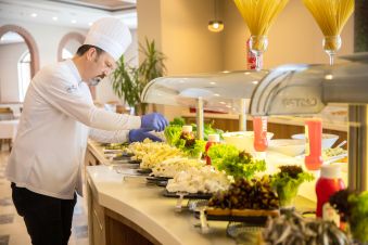 ULTRA ALL INCLUSIVE - закуска, обяд, вечеря и междинни хранения на шведска маса; местни алкохолни и безалкохолни напитки - без лимит (съгласно концепцията на хотела).