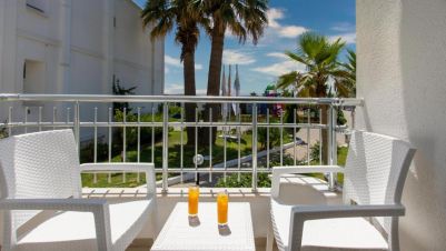 Хотелът разполага със 176 стаи, от които 88 стандартни стаи (спалня и диван, 22 кв.м) и 88 супериор стаи с изглед градина (22 кв.м) в 2 двуетажни сгради. Всички стаи са оборудвани с климатик, телевизор, телефон, баня с душ/вана, сешоар, мини бар, сейф, балкон или тераса. Почистване на стаите - всеки ден, смяна на спалното бельо и кърпите 2 пъти седмично.