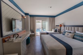 Хотелът разполага с общо 375 стаи, от които 276 Standard Room (31 м2), 74 Family Room (2 спални, 1 баня - 38 м2), 8 Swim-Up Room (директен достъп до басейна, 31 м2), 12 Junior Suite Room (38 м2), 4 Deluxe Room Sea View with Jacuzzi (31 м2), 1 Family Deluxe Room Sea View with Jacuzzi (2 спални, 1 баня - 38 м2). Всички стаи са оборудвани с климатик, телевизор, телефон, баня с душ, сешоар, минибар (зареждане - всеки ден), сет за кафе/чай, сейф (безплатен), Wi-Fi, балкон. Почистване на стаите, смяна на кърпите и зареждане на минибар – всеки ден, смяна на спалното бельо – 2 пъти в седмицата.