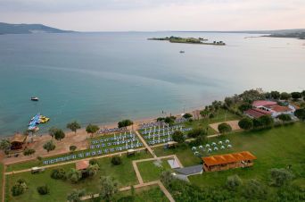 Собствен, пясъчен с дължина 150 м., притежаващ сертификат "Син флаг". Чадъри, шезлонги, матраци и плажни кърпи на плажа и при басейна - безплатно.