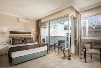 Хотелът разполага с 97 стаи, от 88 които стандартни стаи с балкон (20 -30 кв.м), 9 фамилни стаи с две отделни спални и една баня (40 кв.м). Всички стаи са оборудвани с климатик, телевизор, телефон, баня с душ, сешоар, минибар (зарежда се всеки ден с вода - безплатно), сейф (безплатен). Почистване на стаята и смяна на кърпите - всеки ден, смяна на спалното бельо - 2 пъти в седмицата.