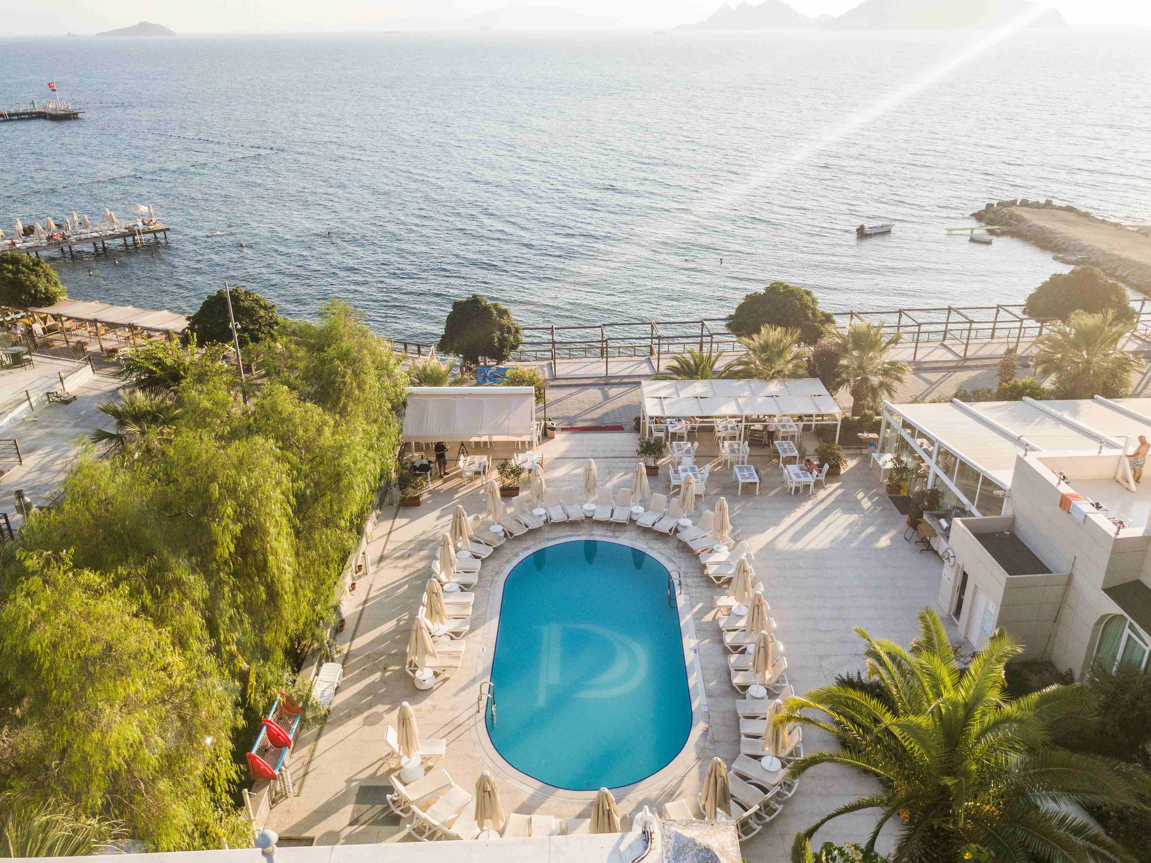 Намира се на 55 км от летище Бодрум, на 20 км от центъра на Бодрум, на 1 км от центъра на Тургутрейс, на брега на морето. Построен 2014 г., на обща площ от 5 000 м2.
