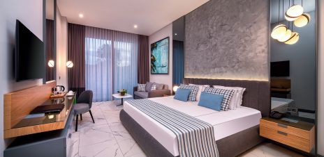 Стаи: 24 Bungalow Standard Room (1 спалня, 1 двойно разтегателно канапе, 1 баня, тераса - 28-32 m²), 132 Bungalow Superior Standard (1 спалня, 1 разтегателен диван, баня и балкон.32-45 m²), 30 Main Building Superior Room With Garden (1 спалня,1 разтегателен диван, баня, балкон - 35-40 m), 26 Bungalow Deluxe Room (1 спалня, 2 разтегателни дивана, баня и балкон - 66 m²), 15 Bungalow Deluxe With Jacuzzi (1 спалня, 2 разтегателни легла, 1 баня и балкон - 48-56 m²). Хотелът разполага още с категория стаи срещу допълнително запитване: Main Building Suite with Sea View (1 спалня, 1 баня, балкон, с гледка към морето - 50 m²), 4 Bungalow Swim up (директен достъп до басейна, 1 двойно легло, 1 разтегателен диван, баня и балкон - 41 m²), Bungalow Family (2 спални, 1 баня и балкон - 56-70 m²), Bungalow Executive (1 спалня, 1 баня и балкон - 89 m²), Villa 2 bedrooms (2 спални, 2 бани, оборудвана кухня, дневна - 100 m²), Villa 3 bedrooms (3 спални, 2 бани, 2 тоалетни, кухня, всекидневна - 160 m²), Grand villa (разполага с 4 спални, 4 бани, 5 тоалетни, кухня, частен плувен басейн, тераса - 305 m²), Premium Villa (разполагат с 5 спални, 5 бани и 6 тоалетни,напълно оборудвана кухня, частен басейн, тераса с места за релакс, голяма тераса - 500 m²), Deluxe Suite with Terrace Jaccuzi (разполага с 1 спалня, 1 двойно легло, 1 разтегателен диван, баня с душ, балкон и тераса с джакузи - 56 m²).
