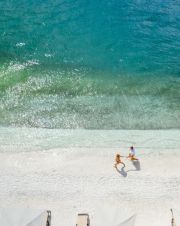Собствен, пясъчен – чадъри и шезлонги на плажа и при басейна – безплатно, плажни кърпи – безплатно. Луксозни шатри - с предварителна резервация, срещу заплащане). Предлага се луксозно обслужване през целия ден. Всяка шатра разполага със сейф и мини бар, предлагат се списания, карти за игра Rixos, пъзели, шах, судоку.