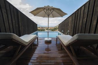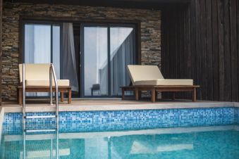 Собствен, пясъчен. Хавлии, шезлонги и чадъри при басейна - безплатно. На плажа - шезлонги и чадъри - безплатно, хавлии - платено. Безплатен шатъл до плажа.