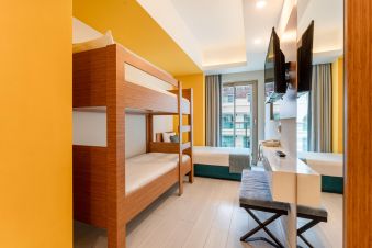 60 Garden Block Standard Room (изглед градина - 26 м2), 275 Standard Room (изглед градина, планина или страничен изглед море - 22 м2), 50 Standard Bunkbed Room (1 спалня и 2-етажно легло, изглед градина или планина - 26 м2), 3 Disabled Rooms (стаи за инвалиди, на първи етаж в основната сграда, гледка градина или планина - 22 м2), 32 Family Room (2 стаи със свързваща врата, 1 спалня и двуетажно легло, гледка градина - 33 м2), 10 Love Suit (спалня, тераса с джакузи, изглед басейн или частично море - 22 м2), 16 Swim -Up Room (спалня, тераса с директен достъп до общ басейн - 26 м2).