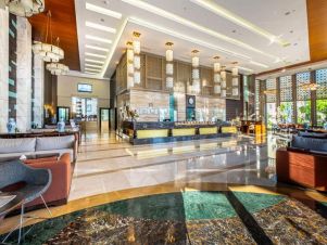 Основен ресторант, 3 а-ла карт ресторанта (средиземноморски, италиански, турски – 1 безплатно посещение). 4 бара, открит и закрит басейн, водни пързалки, сладкарница, мини клуб, мини диско, СПА център, конферентна зала. Wi-Fi (безплатен).