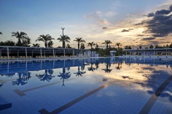 Основен ресторант, 3 A la carte ресторанта, 3 бара, 4 конферентни зали, 3 басейна (1 закрит и 2 открити), 3 водни пързалки, тенис на корт, салон за красота, СПА център, лекар, интернет в лобито на хотела (безплатно). Безплатни услуги: фитнес център, сауна, турска баня, тенис на корт, ракети за тенис, тенис на маса, билярд, дартс, шах, баскетбол, волейбол, плажен волейбол, кану, аеробика, мини голф, дискотека, анимация. Платени услуги: масаж, джакузи, солариум, езда, водни ски.