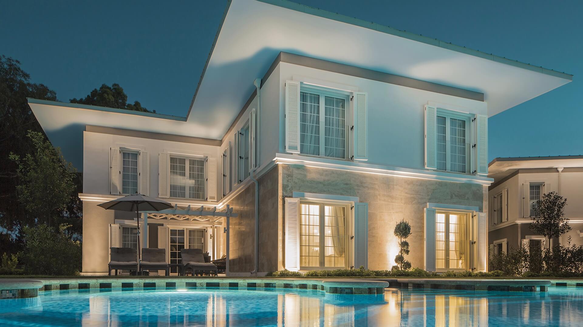 Хотелът разполага с общо 33 двуетажни вили, всички с вход към общия басейн с морска вода, 26 Azure Villas (с 2 спални помещения), 7 Azure Villas (с 3 спални помещения). Всички стаи са оборудвани с климатик, телевизор, телефон, 2 бани с вана/душ, сешоар, халат и пантофи, ютия, минибар (безплатен), сейф (срещу депозит), кафе Lavazza/чай. Почистване на стаите - всеки ден, смяна на спално бельо и кърпи - 3 пъти седмично.