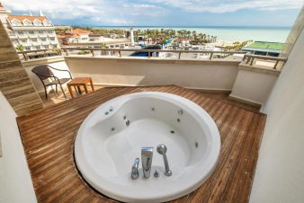 Собствен плаж, безплатни чадъри и шезлонги на плажа и на басейна. Плажни хавлии - с карта за хавлия и срещу депозит.
