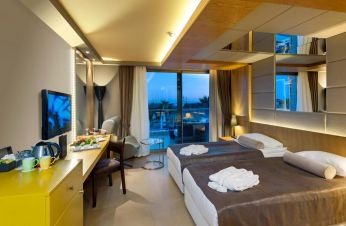 Основен ресторант, 1 а-ла-карт ресторант (интернационален, с предварителна резервация съгласно концепцията на хотела ), 5 бара, сладкарница, открит и закрит басейн, СПА център, дартс, фитнес, тенис корт, тенис на маса, боча, водна гимнастика, аеробика, баскетбол, плажен волейбол, фризьор, пералня, магазини, лекар, 1 конферентна зала.