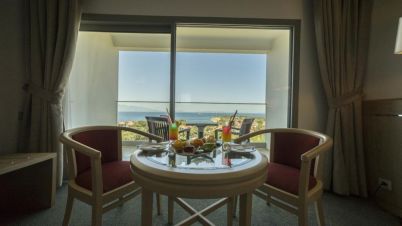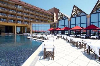 Основен ресторант, 5 бара, 2 открити басейна, закрит басейн, термален басейн,СПА център, фитнес център, магазини, паркин За децата: Детски басейн, 2 водни пързалки, детска площадка, мини клуб, анимация. Безплатни услуги:Сауна, турска баня, фитнес, тенис на маса, Wi-Fi(в лоби). Платени услуги: Масаж, фризьор, билярд, пералня, химическо чистене, лекар, детегледачка, моторни и безмоторни водни спортове Плаж: Собствен,малък пясъчно-чакълест и платформа. Чадъри, шезлонги и матраци на плажа и при басейните – безплатно, плажни кърпи - безплатно.