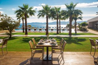 Основен ресторант, а-ла-карт ресторант, лоби бар, бар при басейна, снек бар на плажа, открит басейн, СПА център (2500 м2, термален басейн, таласо басейн, закрит басейн, джакузи, турска баня, парна баня, сауна, солна стая, леден фонтан), фитнес център, 2 тенис корта, 1 баскетболно игрище, игрище за мини футбол,конферентен център, паркинг. За децата: детски басейн.
