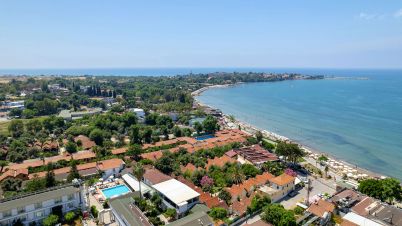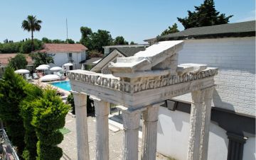Намира се на 65 км. от летище Анталия, на 74 км. от центъра на Анталия, на 1 км. от центъра на Сиде. С обща площ от 3000 м2.